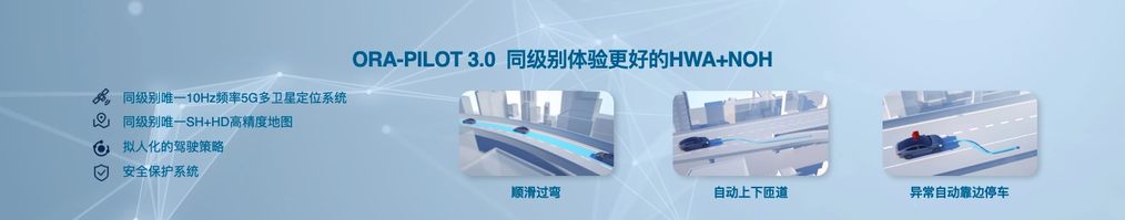 以感知架构为例,ORA-PILOT 3.0智能驾驶辅助系统搭载28个智慧传感器,采用摄像头、感应雷达、5G多卫星高精度地图的融合方案,提升了在高架、隧道等复杂场景的定位准确度和反应速度。
