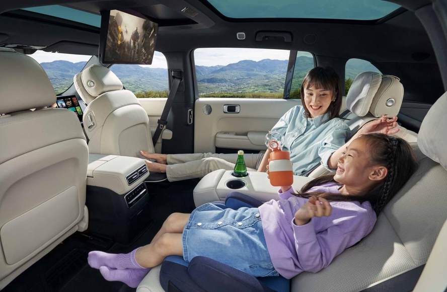 作为一款家庭旗舰中大型五座SUV,灵活的第二排布局同样重要。理想L7的后排中央座椅放倒后,即可变成一个超大扶手,与车门上的柔软肘托环抱整个座椅,将一个豪华舒适的电动三人沙发立刻变成两个独立的VIP座椅。配合7.3.4全景声音响系统、双层隔音玻璃,让您拥有沉浸式的音响体验。
