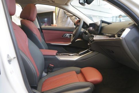i3外观内饰用的是未发布的新款3系的设计,双肾进气格栅轮廓更大,旁边还有镀铬装饰。天使眼大灯也更加立体。两侧有LED迎宾踏板,可以照射出“天使之翼”般的迎宾光毯。