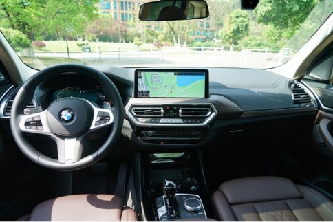 相比而言X3的座舱就要讨喜多了,首先屏幕的UI设计要更加细腻、温润,而且人机语音交互也比Q5L更灵敏好用(奥迪的人机交互反应较慢,且识别率较低)。此外X3的iDrive旋钮依旧保留(而不像Q5L那样去掉了MMI旋钮自毁长城),既可以触控屏幕也可以通过旋钮来操作。