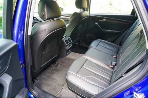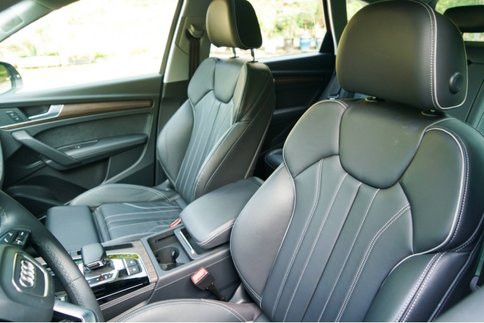 在前排座椅的舒适性上Q5L扳回一局。这台顶配车型提供了真皮座椅,而X3全系都是仿皮。也许是心理作用Q5L的皮质摸起来确实比X3要更加细腻一些。两车虽然都提供腿托且座垫宽度都不算短,且都提供前排座椅电调、加热和主驾驶位的记忆,但Q5L的副驾驶多出了4向腰部支撑调节,功能上略占优势。