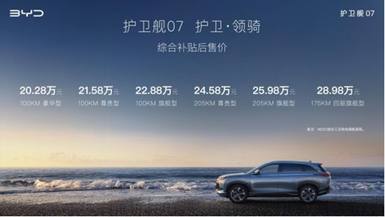 比亚迪护卫舰07正式上市,综合补贴后售价20.28-28.98万元