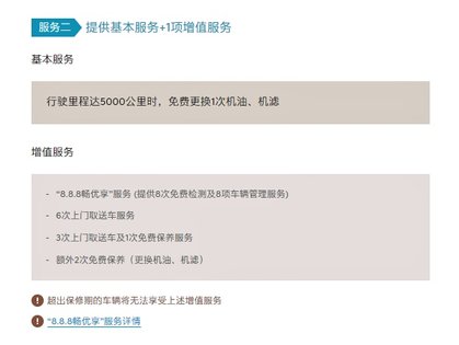 至于保养服务政策方面,帕里斯帝在首保免费更换机油、机滤的同时,同样提供了几种不同的增值服务方案供用户选择。