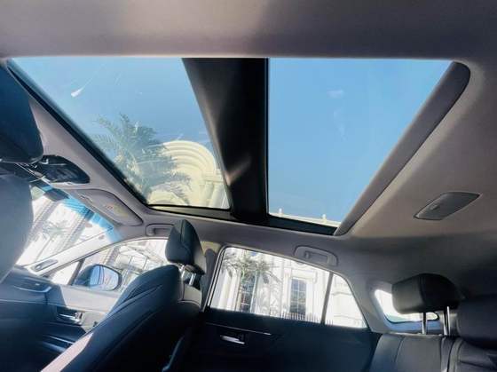 全景天窗采用了电子玻璃变色技术,通过按键控制可以改变透光率,即可以明亮透澈,也可以产生毛玻璃的效果,两种模式都可阻挡99%以上的紫外线。