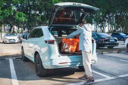 所以,要成为“春劫大挑战”的优胜者,装载力是一台车最核心的竞争力。不过,这对于e:NP1极湃1来说,都是小case。本田作为业界的“空间魔法师”可不是说说而已,这台车乘坐空间舒适,储物空间丰富,日常出行完全够用,而且e:NP1极湃1的后备厢不仅造型规整,还有很深的下挖空间,放下满满当当的年货不在话下。