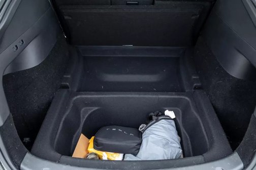 Model Y的后备厢空间纵深很不错,高度以电动SUV来说也很不错,只是宽度略窄,总体上跟ID.4的后备厢一样,属于比较大的。另外地板掀起来下面还有比较大的一块空间,反而比特斯拉传统的“前备厢”好用,值得好评。