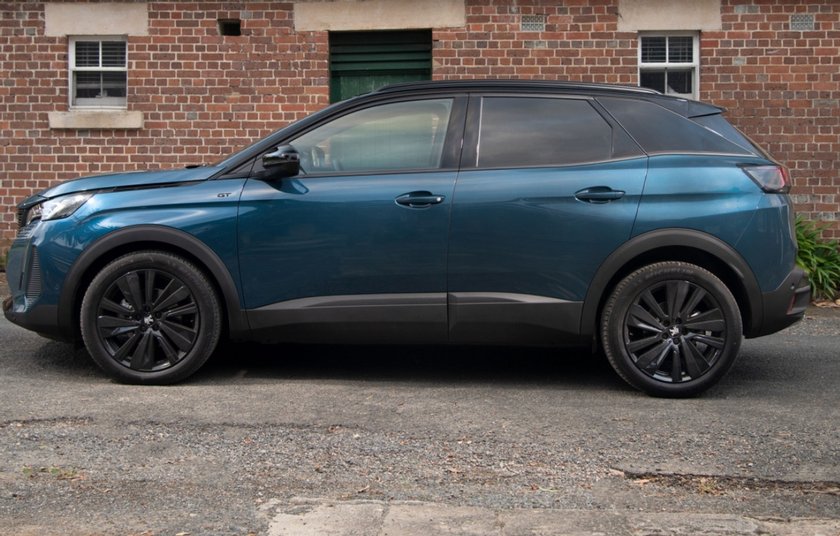侧面来看,新车造型饱满,腰线不太明显,相比市面上常见的跨界风格车型,这款车设计上收敛很多。悬浮式车顶造型和上面的行李架是标致SUV车型的经典配备,底部是双五辐式轮毂,搭配的是黑色后视镜。尾部有着标志性的狮爪样式尾灯,中间有装饰板连接,形成了一体式造型,下方风格具有不错的层次感。