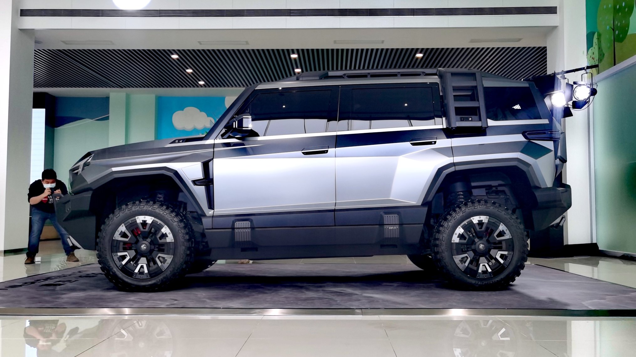 今年有两台越野硬货和大家见面,第一个是东风猛士电动越野车M-Terrain。