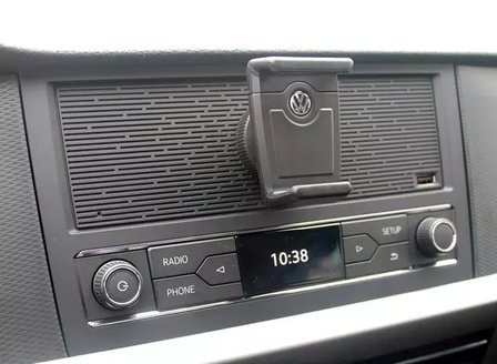 接着来看内饰,由于是入门版车型,朗逸2019款 1.5L 手动风尚版的内饰看上去就有点简陋了,虽然设计没有变化,但用料和配置大幅缩水,座椅是织物,方向盘是塑料,没有天窗这些都可以理解,但连中控屏幕都没有就值得商讨了,毕竟也是款一线合资品牌的A级车,指导价也超过了11万,没有屏幕也就罢了,竟然原厂配了一个手机支架,而且还支持横屏和竖屏,旁边还加了一个USB充电接口,说起来还挺人性化的。