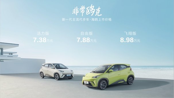 万众瞩目的比亚迪海鸥,终于迎来了正式上市!4月26日,比亚迪官方正式宣布,旗下全新微型纯电车线——海鸥正式上市。作为海洋系列全新入门车型,本次新车的售价区间为7.38万~8.98万元,而相比前段时间公布的7.88万预售价来看,降价5000元也终于让不少网友纷纷停止了吐槽。