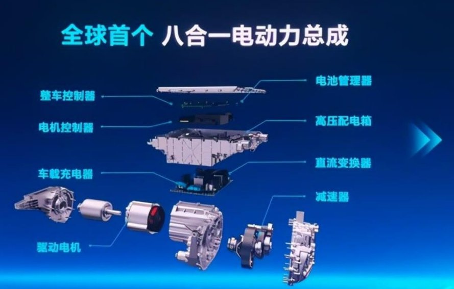 动力部件的深度集成可以有效减小系统重量和体积,减少占用空间,降低损耗。同时缩减系统零部件,提高NVH(噪声、振动与声振粗糙度)表现。八合一电动力总成是比亚迪独立自主开发,全球首款量产的纯电动力系统总成。总成集成了驱动总成(电机和变速器)、电机控制器、PDU(电源分配单元)、DC-DC、OBC、VCU、BMS。通过功能模块的系统高度集成,达到提高空间利用率、减轻重量等目的,具备高度集成、高功率密度、高效率的特点。