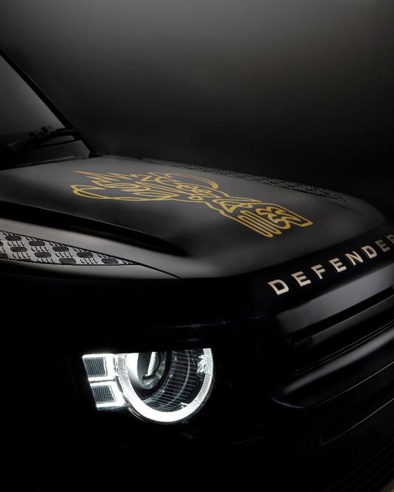 定制的插电式电动混合版本的卫士110车型发动机罩采用了2023年法国橄榄球世界杯专属的主题涂装