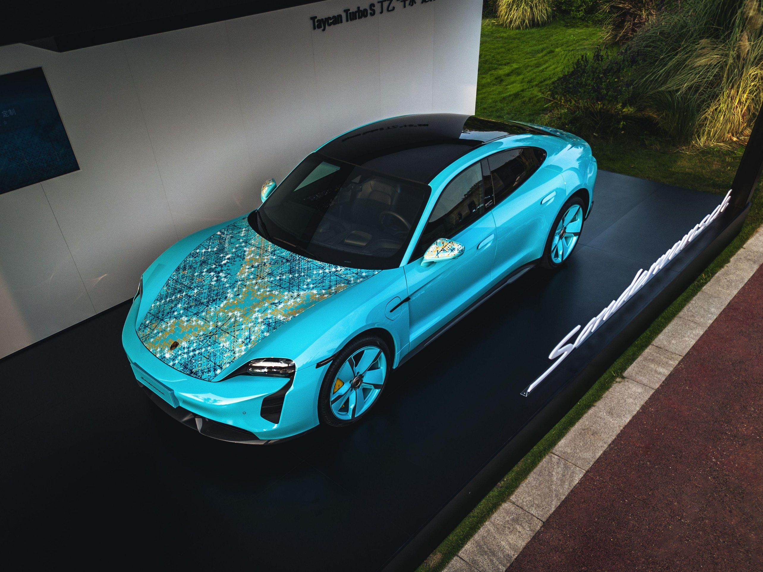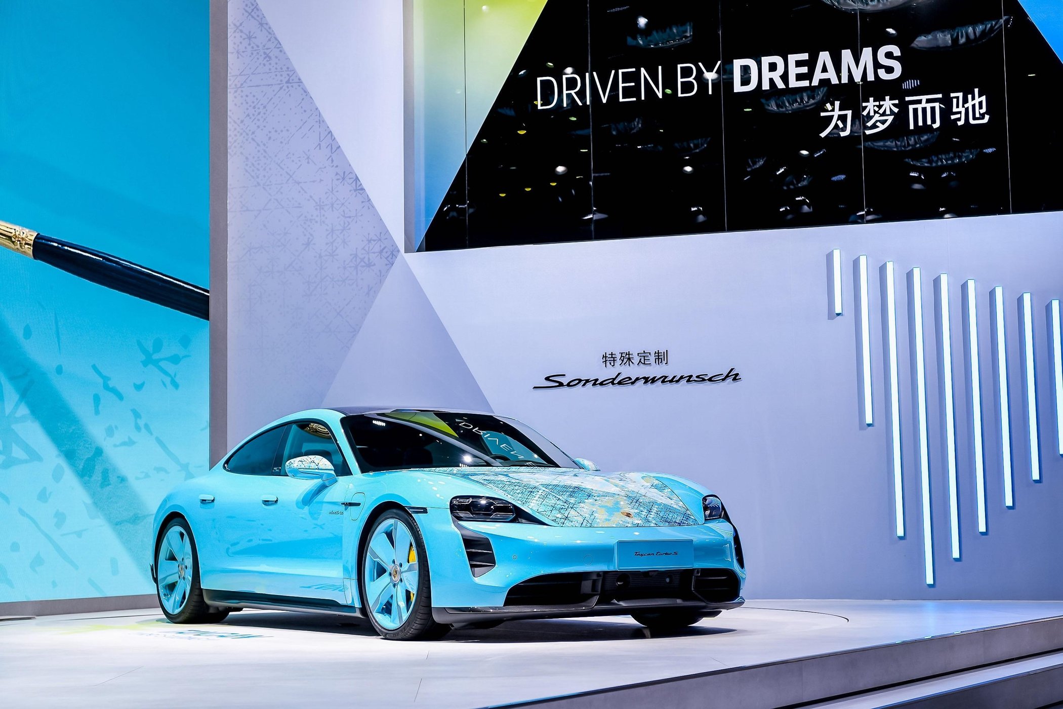 此次车展,保时捷展台还展示了一辆极为特殊的定制跑车——Taycan Turbo S 丁乙“十示”定制,在保时捷的宣传中,这款纯电四门轿跑展示了保时捷Sonderwunsch项目作为最高水平的定制化服务所提供的极致工艺和无限可能。