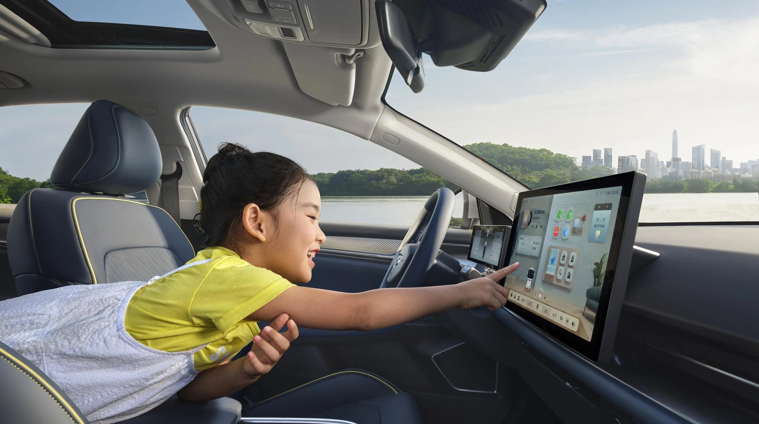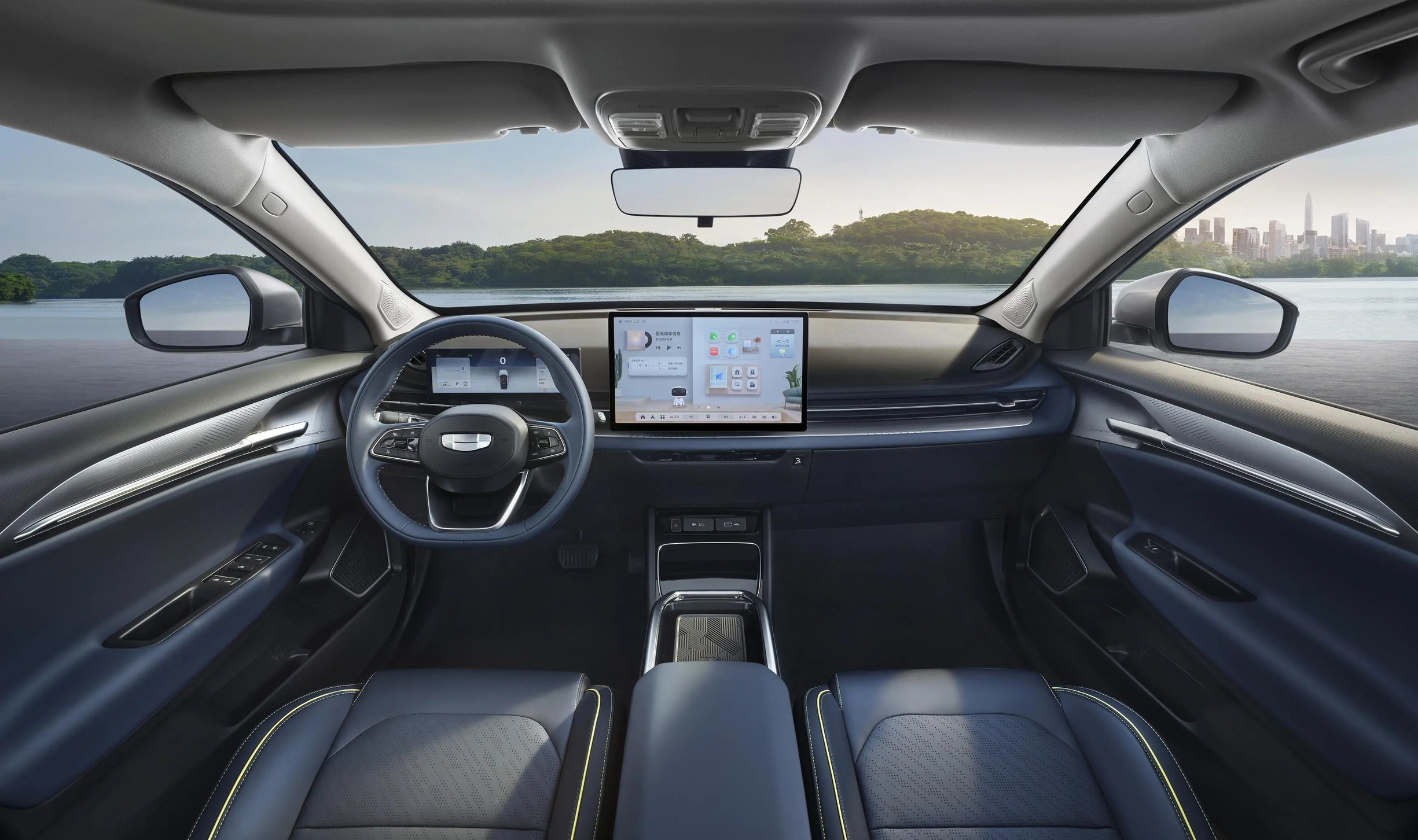内饰部分依旧让人满意,采用非常简洁的中控台布局,配备10.2英寸全液晶仪表搭配 14.6 英寸中控屏幕和三幅式多功能方向盘;座椅采用包裹式设计,由黄色线条装饰,并新增 “远山黛”内饰配色。值得一提的是,全新几何G6配备了全新的华为车机模组,拥有8G运行内存及128G存储内存,让开机快、运行快、切换快、同步快、流转快。
