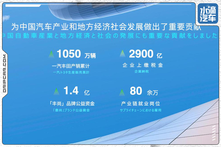 足够优秀的造车技术、足够大的规模效应以及足够到位的服务,让一汽丰田在中国市场的销量表现十分亮眼,如今一汽丰田的累计销量已经达到1,050万辆,营业收入突破了1.6万亿,全国各地的经销商超过了750家,供应商超过了5,000家。此外,一汽丰田全产业链提供了超80万个就业岗位,为其在新能源时代持续铺路。