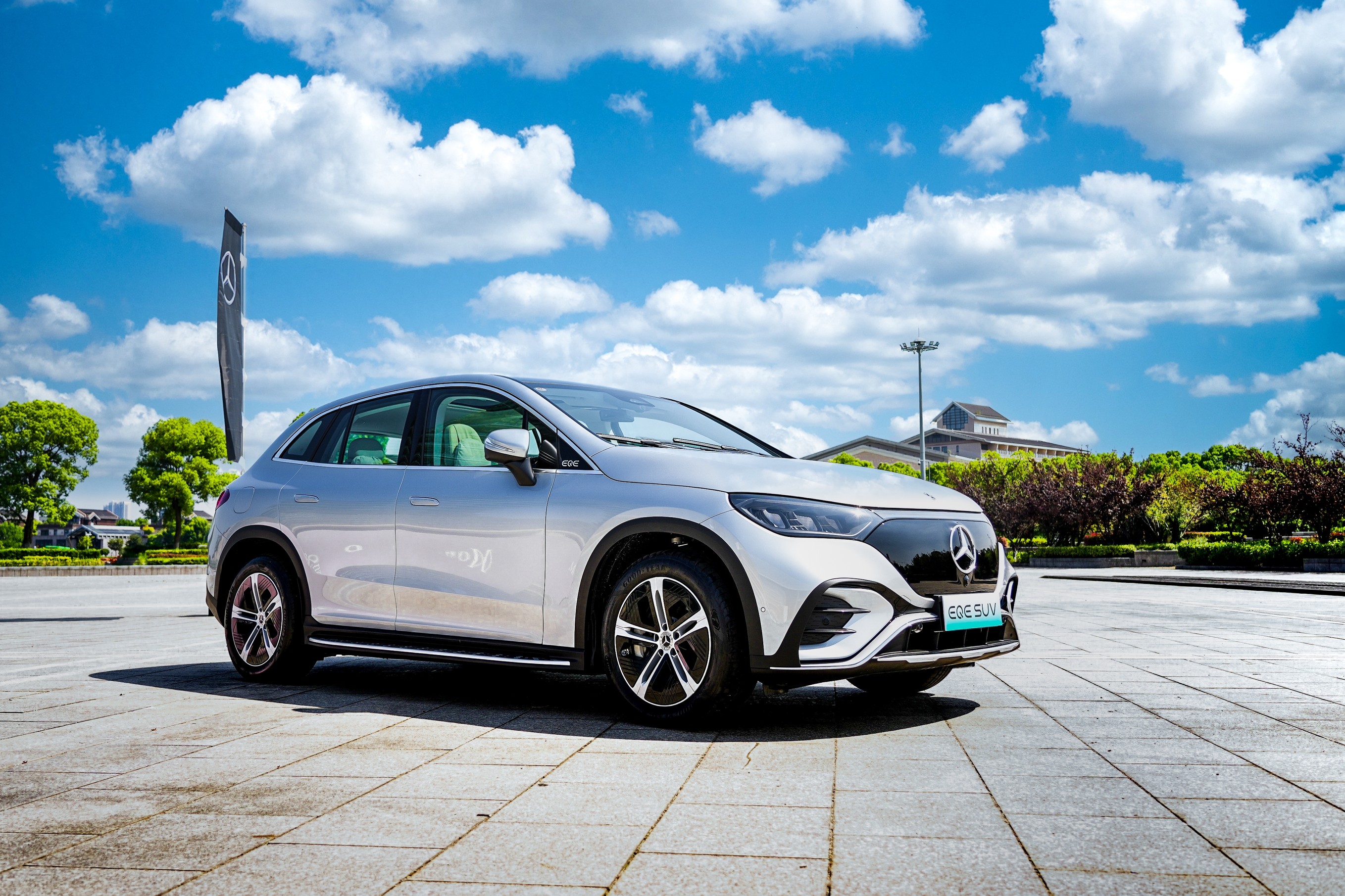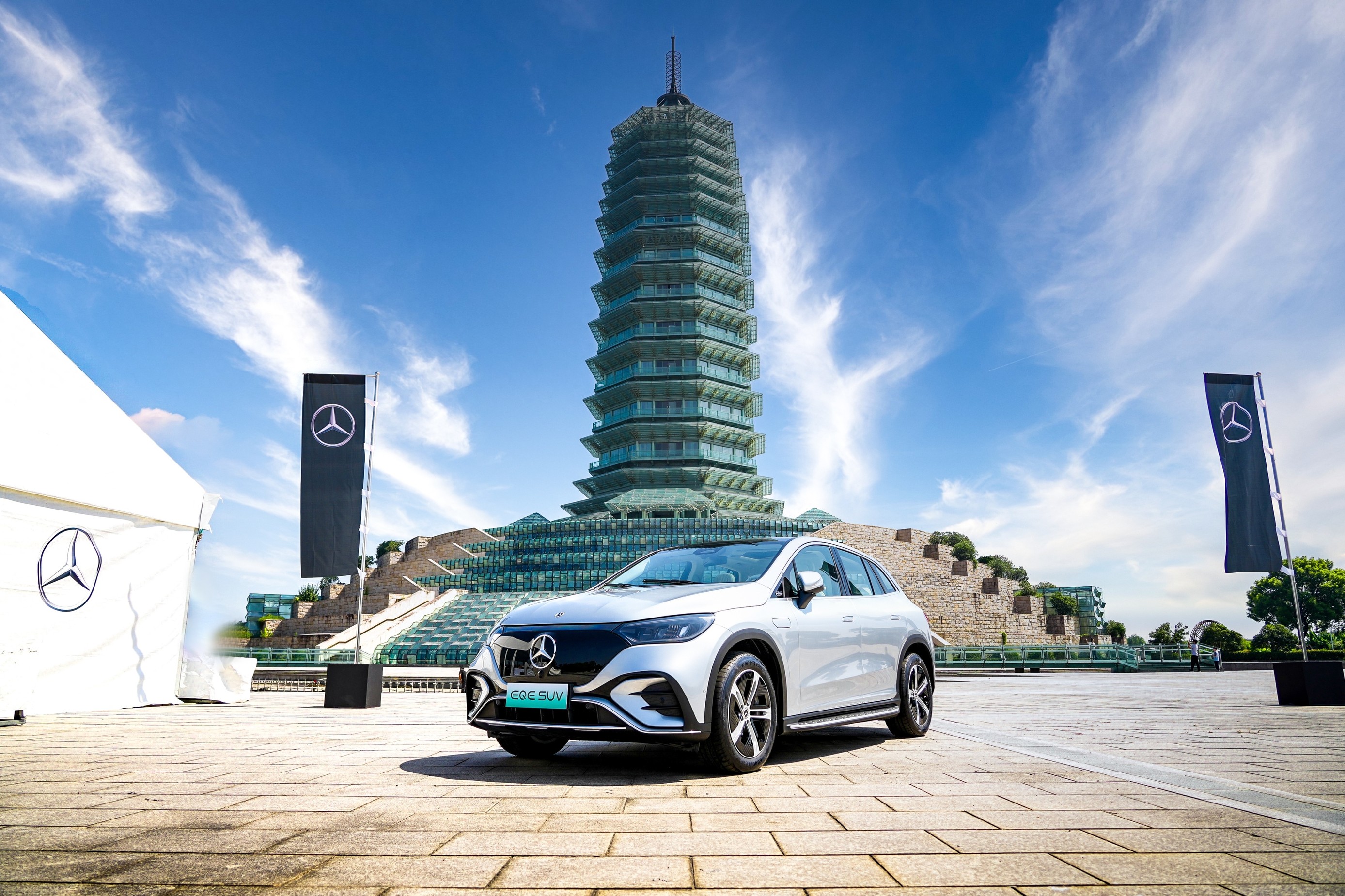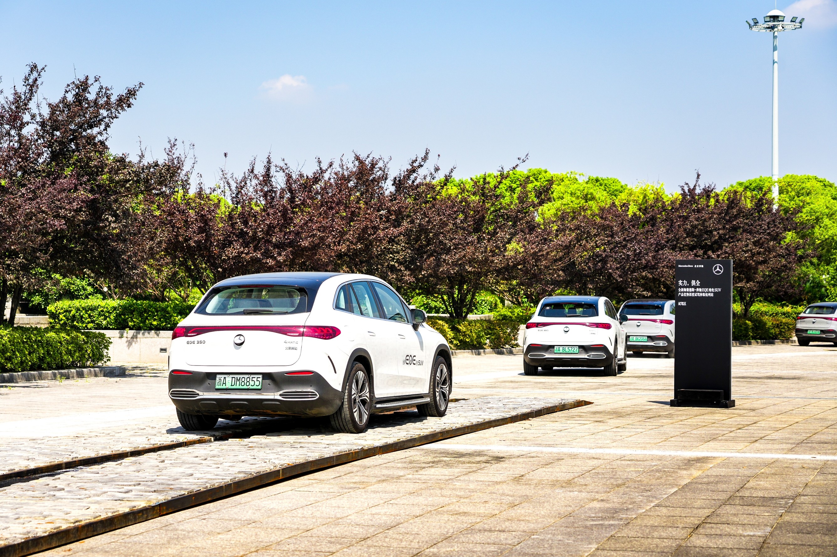 行驶在9月初的杭城,可以闻到点点桂花香,一场奔驰全新EQE纯电SUV邂逅江南美景的产品优势深度试驾体验活动在杭州水利博物馆雅致开场。