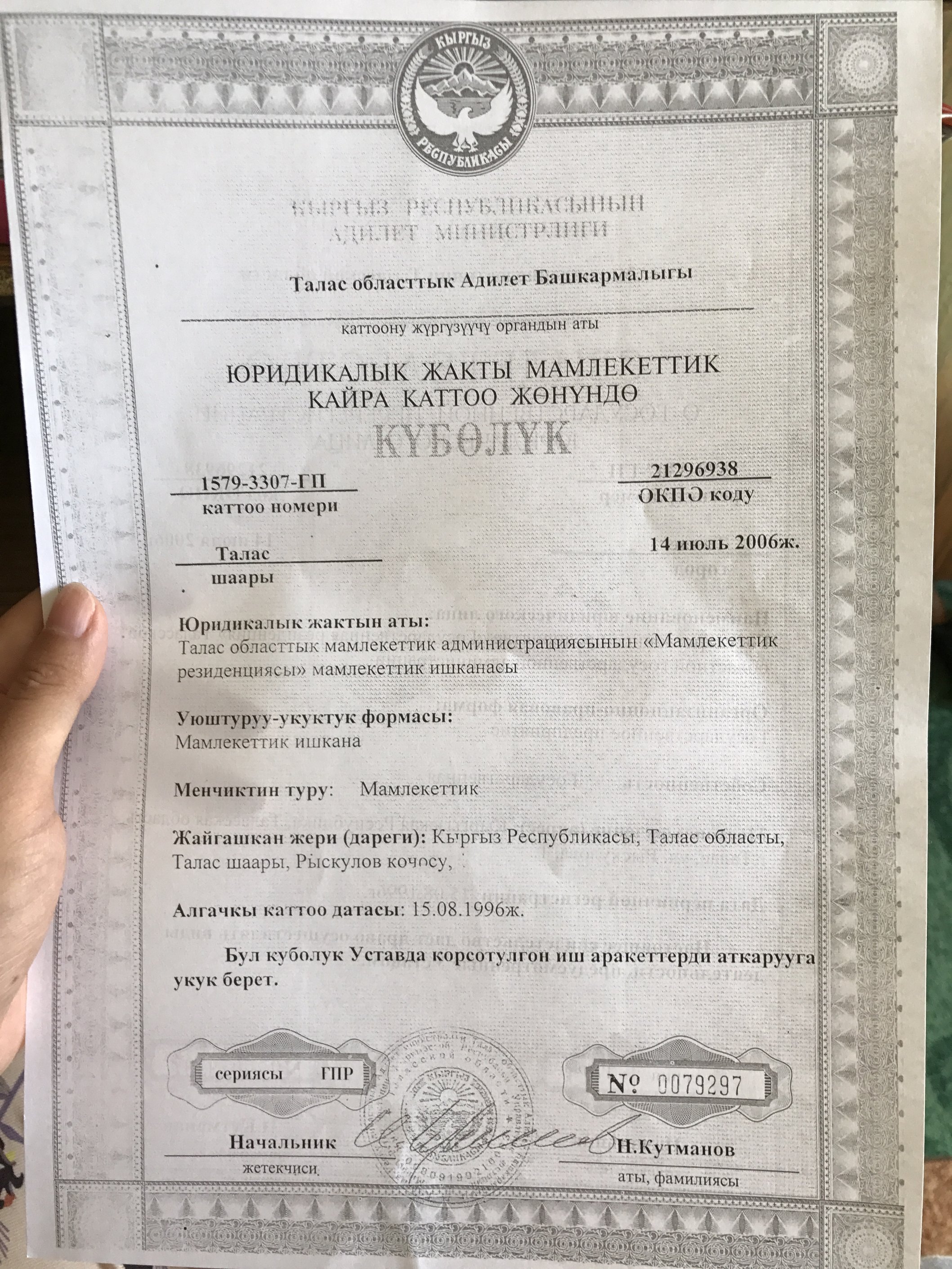 入境没多久,我们到达吉尔吉斯第一个城市,塔拉斯(是不是跟哈萨克离境城市名字差不多)。 依旧是每次入境后都要做的两件事,换取当地货币,购买当地SIM卡。吉尔吉斯也可以使用银联卡直接取现,当地银行不收取手续费 考虑到昨天一晚没睡,虽然时候尚早,我们决定不再继续向前走了,找个酒店准备补觉。爆胎那晚太郁闷,根本就没怎么合眼,第二晚也是赶了一整晚夜路,所以已经是50多小时没好好睡觉了。 中亚这些小城市是在网上找不到hotel预定的,只能到了每个城时候,找一个会说英语的年轻人,问问这里都有什么住宿。然而,在塔拉斯的住宿让我们真的非常不爽 跟随当地人的推荐,我们去了一家看上去很有年头的旅馆。因为知道这里没啥好住宿(哈萨克同理,小村子都太落后了,能住就行了),所以也没太挑,付钱就住进去补觉了谁知睡到晚上十点,店家过来告诉我们,因为我们是外国人,要交双倍钱,我擦,还有这样的?!!?!先不说是不是真的外国人本国人两个价格(确实斯坦国们目前还有这个现象,过去中国也有),还有住进来以后继续加价格的???而且是晚上十点才说,整个一下午都干嘛去了??(因为不需要登记,所以不存在前台犯了错误需要自掏腰包的说法)瞬间有被欺骗的感觉,要不是真的太累了,肯定直接走人换一家去。立马要求他开个收据,不能让他省事!然而推三阻四了一番,拖到第二天早晨才拿到收据。