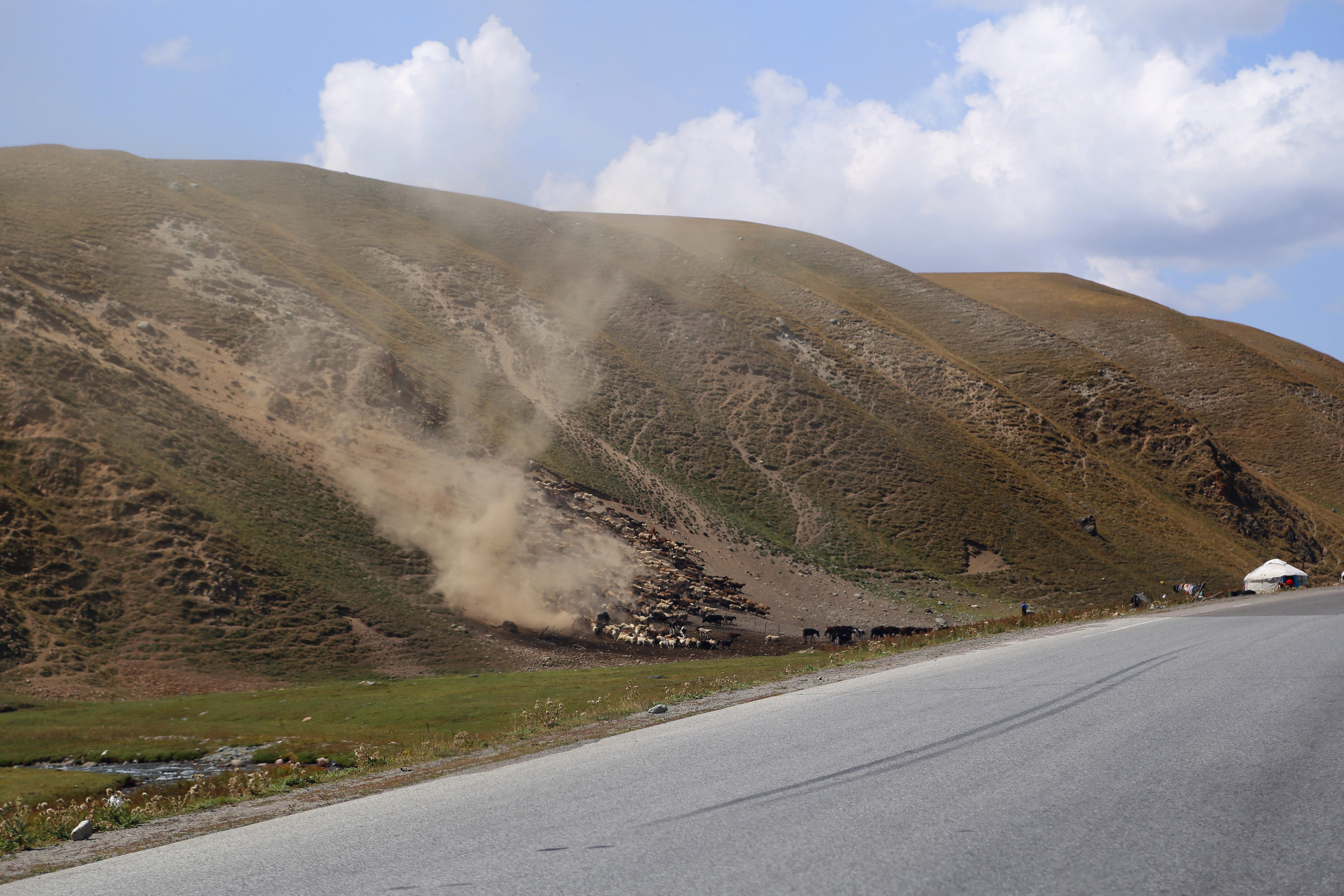 吉尔吉斯斯坦,我们这次回国前路过的最后一个国家,也是这一路上最贫穷的国家。吉尔吉斯不像哈萨克一样盛产石油,这里主要的产值都是农业,而全国又以山地为主(事实上我们就没有碰上过看不到山的地方),所以耕地面积并不是很大。吉尔吉斯的人均GDP仅仅为卡塔尔的3%,中国的20%,他的另一个邻国哈萨克的14%。
