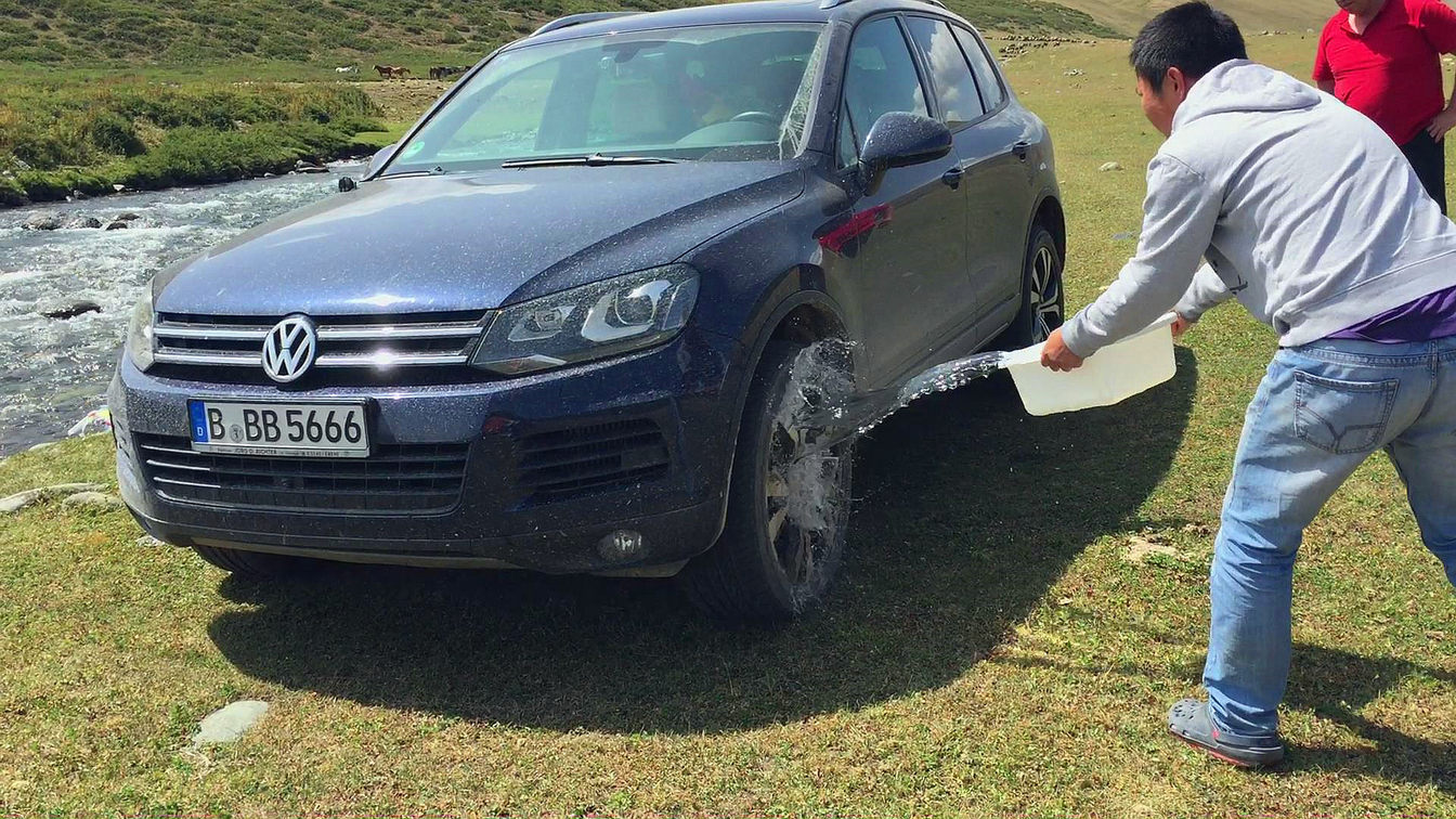 再说一说我们出发前所携带物品取舍的想法 首先,所有下面的考虑都是在经济有限的前提下,必须从空间上考虑有所取舍。没有过多的费用购买安装顶部托架和5条新轮胎,买这些就要动用本来准备的路上应急款,然而长途旅行没有应急资金是不明智的。虽然这部分本来特地留给路上的应急款最后还是花在了轱辘上 出发前,考虑到可能只有这里会有一段碎石路面(吉尔吉斯还有一段,但是那段路并不是首选路线)。相对于17000公里的路程,真的是短到可以忽略,所以当初认为爆胎的概率不大(针对扎胎问题带了好多瓶补胎液来应急)。如果携带备胎的话,就不能携带备用油箱(带了40L备用柴油,从离开俄罗斯开始装满的)。如果真的路上无人区没油了的话,可能会受到低温或者高温的威胁,并且车辆不可能继续前进。但是就算轮胎爆胎了,在决定放弃轮毂的情况下,我们继续行驶个几十Km是没问题的,也许这几十Km会挽救我们的生命。So,两害相权取其轻,我们选择了油箱。但是,带了套大轮毂绝对是个严重失误,应该带另外一套17寸的,以前一直在城市呆着,不知道低胎宽比的略势。