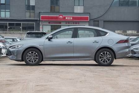 来到秦PLUS DM-i的车身侧面位置,可以发现整车拥有着相当修长的轮廓,悬浮式车顶强化了运动性,侧窗边缘位置有着银色铬条包裹,cd柱间还有着四边形的侧窗组合,上腰线贯穿前后车身,车门板下方位置也有着自然的凹痕,前后翼子板间留出大面积的空间,多辐式铝合金轮毂造型精致,规格则达到了225/60 R16。