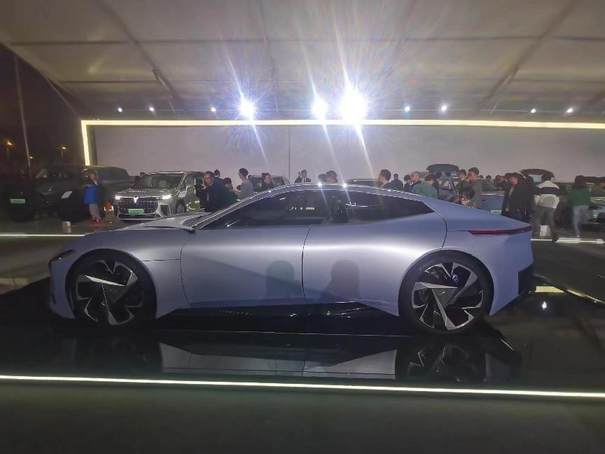 车身侧面,线条看起来非常流畅,采用了低风阻设计,实现0.209Cd超低风阻,低趴的车身加上弧线造型的车顶让eπ007充满运动气息。另外,车门是时下流行的隐藏式门把手设计,前门配备了电动剪刀门,可以上下开启,这种设计一般只有百万级跑车才有,让人看到后印象深刻。