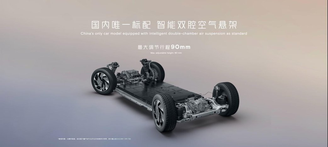 双腔空悬则是兼顾舒适、驾乘及便捷性的利器,也是家庭MPV的底层需求。小鹏X9配备了智能双腔空气悬挂系统,最大调节范围可达90mm,用户可手动选择不同的档位改变车身高度,进而提升续航能力、通过性、操控性等。智能双腔空气悬挂系统还可实现舒适的震动过滤,可在毫秒内做出响应、自动匹配适当的阻尼并调整,融合车辆上多个传感器信号,可有效提升高频低幅、细碎振动的隔绝优化,无论是平整的柏油路,还是坑洼的碎石路,底盘均能高效过滤路面的振动,将细碎的颠簸有效隔离,为车辆带来更平顺的行驶体验。