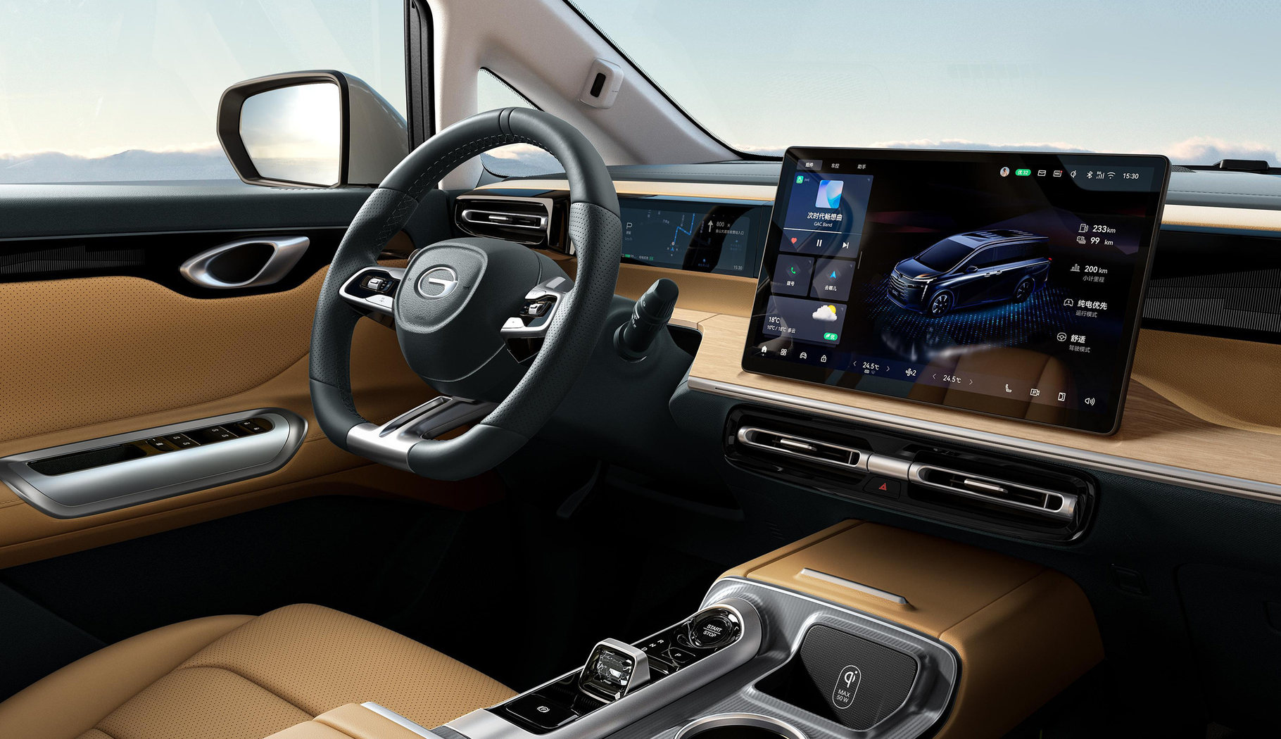 14.6英寸中控屏则采用悬浮式造型设计,屏幕采用窄边设计,外观看起来美观大气。内置ADiGO车机系统,并搭载目前主流的高通骁龙8155车载芯片,操控感流畅自然,支持4G车机网络、OTA升级、车机WiFi连接和车机WiFi热点、车载蓝牙电话等,提供道路救援呼叫服务、语音识别控制系统、远程控制功能等。该车取消了物理按键,也可以在行车过程中,唤醒语音助手“你好,小祺”对空调、音量、车窗、天窗等进行语音控制,无需手动操作,即可快速操控。此外,在屏幕上还会显示语音助手“小祺”的虚拟形象,设计师对该虚拟形象进行了升级优化,显示更加形象生动。
