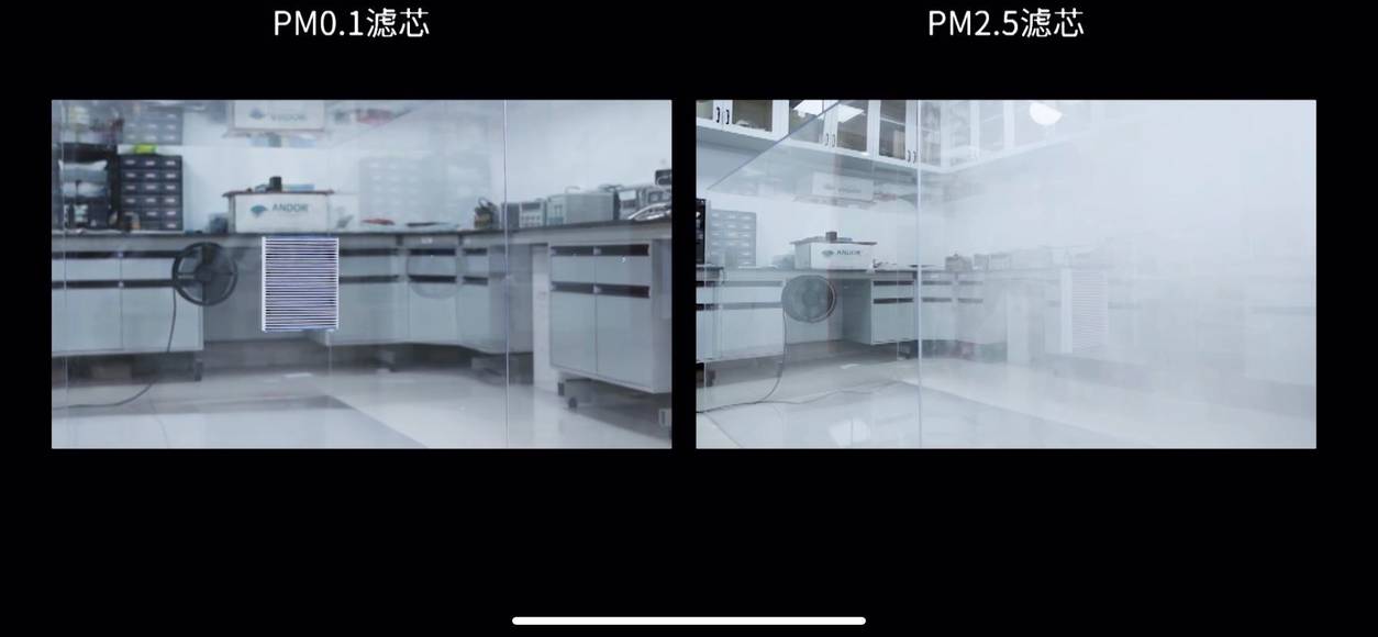 而经过一段时间后,经过专业测量仪器的检测,我们看到安装PM0.1滤芯一侧的玻璃箱中测得空气污染颗粒数值为0.04毫克/立方米,而安装PM2.5滤芯的玻璃箱中污染颗粒数值则为0.237毫克/立方米,二者效果差距明显。