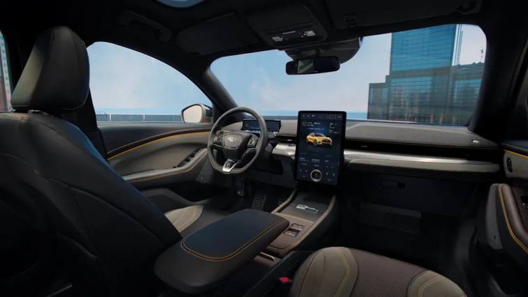 2024款福特电马还新增了“啸日橙麂皮内饰”和“极光柠皮质内饰”,这一点也比竞争对手的极简风要强。