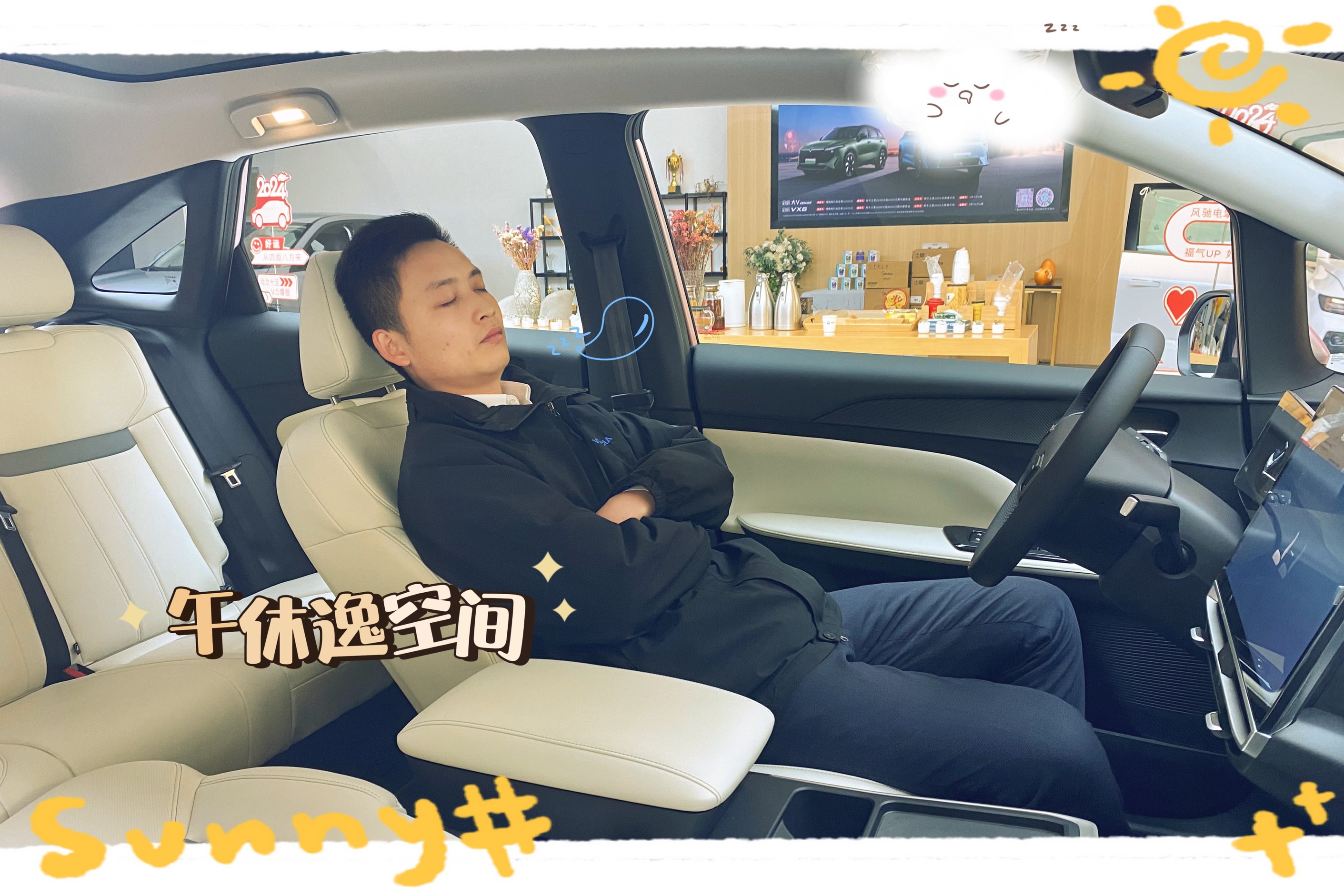 继续来,说重点,一键操作,就能把主副驾座椅电动后移,靠背自动调到最舒服的角度,就像变魔术一样,瞬间变成一张超舒适的“懒人沙发”,还带记忆功能哦!