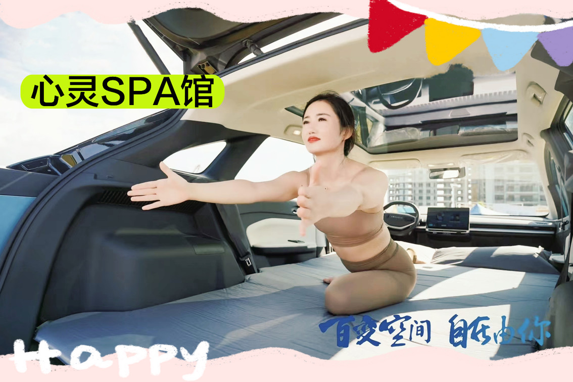 能睡觉能休息可能还不算什么,只需轻轻一按“冥想模式”,后座立马自动放倒,瞬间腾出1米72长的纯平区域,就像把专业SPA馆搬进了车里,变身为你的私人放松冥想小天地,即使在繁华都市里也能让你找寻片刻宁静。