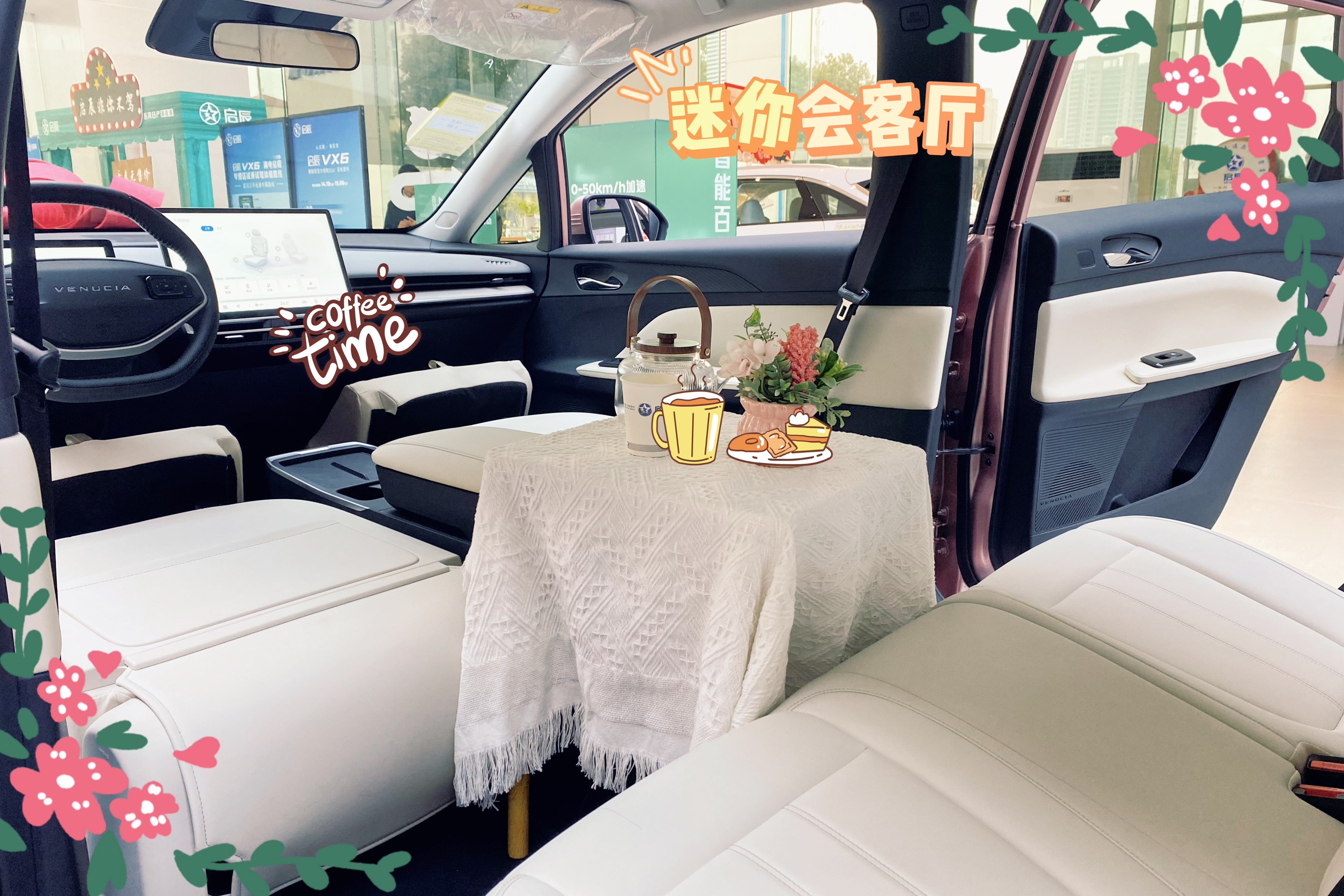 前排座椅还能折叠,搭配一张小客桌又能秒变迷你会客厅,这种创新的设计打破了传统汽车座椅布局的束缚,眨眼间就变出个前后对坐布局,这样一来,车内立马就成了一个既温馨又宽敞的聊天小天地。车内空间设计的也是超灵活超贴心,头部和腿部的空间都足够大,甭管是大人还是小孩,都能舒舒服服地面对面交流,一点儿都不会觉得挤。