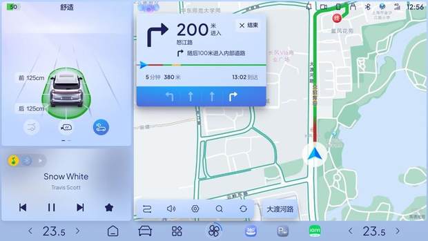 如果大家已经玩腻了手游,或是厌倦了小小的手机屏幕,那不如体验一把哪吒X新增的“哪吒爱玩”车载游戏。该游戏内置拳皇、最终幻想、极速飞车等经典游戏,无论在午休时光,还是在车辆充电之际,用户可通过专属低延时游戏手柄尽情畅玩,或一人独乐或双人成行,都能在大屏上华丽的光影效果中徜徉游戏世界。如果想要享受音乐,全新的雷石KTV内置海量原版、原画卡拉OK MV资源,让用户随时随地在车内高歌一曲。为了优化听音乐体验,哪吒X还对主页音乐卡片进行了调整,只需一键收藏,即可将心仪的音乐放入收藏夹,操作便捷。