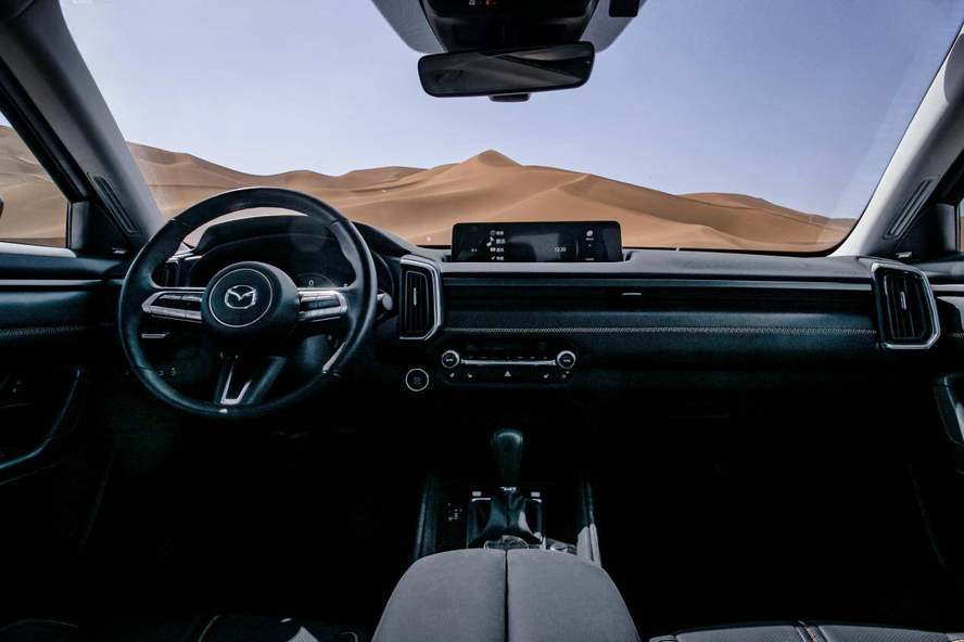 内饰部分,CX-50行也畅行的中控台整洁,干净,并没有被电子屏幕“污染”痕迹,自然的向座舱前后延伸。这样的设计让人联想起干净利落的建筑结构形象,结构感十足,给人一种坚固、可靠的实用感。再配合皮革座椅中粗犷而不失精致的“X”CROSS对称缝线装饰,更能让人感受到源于马自达的纯粹,并快速激发起入座者的驾驶欲望。