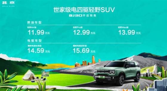新能源汽车产业的逐渐兴盛,则给轻越野市场再添了一把火。在不久前的北京车展上,北京汽车BJ30宣布开启预售,预计5月正式上市。