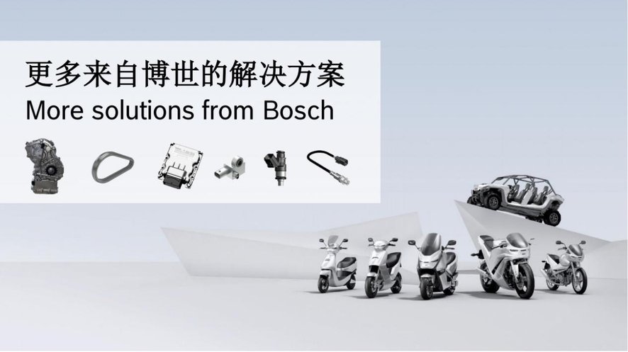 博世还为摩托车提供新一代中大排量电喷控制平台、电子节气门电喷系统解决方案、机械节气门电喷系统解决方案、智能悬架控制解决方案等等。同时,为摩托车提供动力强劲、可靠耐用和能耗更低的摩托车 CVT 无级变速器,以及适用于两轮车和户外四轮运动车型的 CVT 无级变速器压力钢带。
