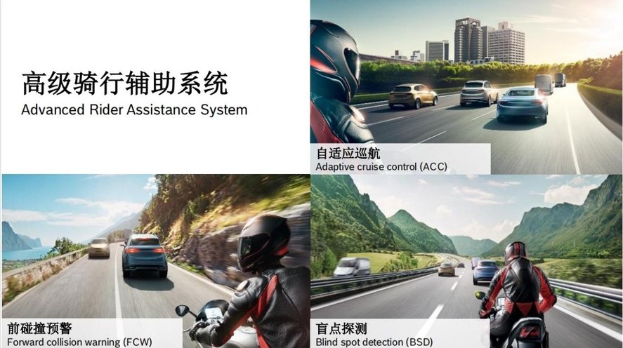 在进一步提升摩托车骑行安全性及舒适性方面,博世还推出了基于雷达的高级骑行辅助系统 ARAS。基于博世前、后雷达提供的信息,你的摩托车能够更智能感知车身周围的路况,从而实现自适应巡航控制、前部碰撞预警、盲区探测以及预警提示等多种辅助功能。