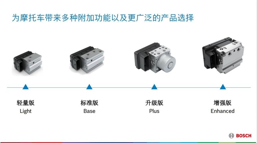 截至 2023 年末,在中国有超过 100 万辆摩托车装配了博世 ABS,摩托车 ABS 能够有效避免摩托车在紧急制动时轮胎抱死,减少严重和致命的摩托车事故,大约四分之一的两轮车伤亡事故可以通过 ABS 来避免。针对摩托车不同的排量和车型需求,博世 ABS 还提供轻量版、标准版、升级版、增强版等多种版本类型,提供适配选择。