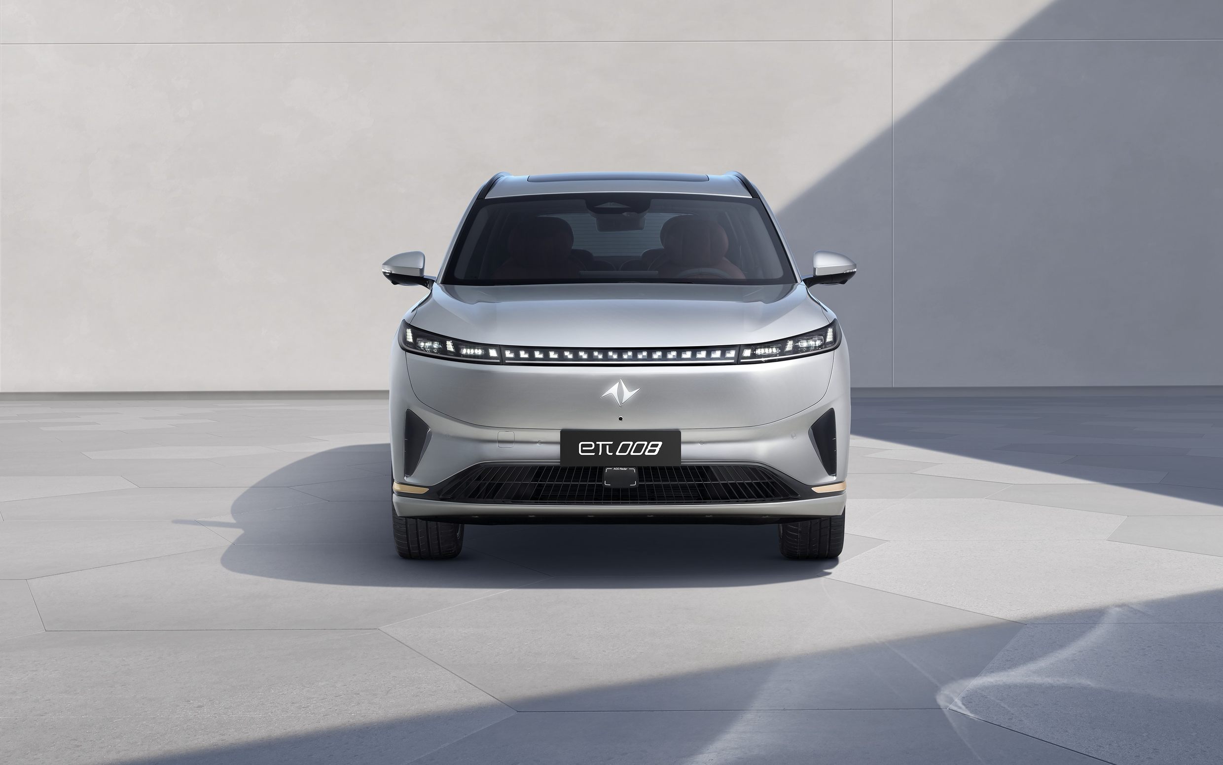 东风奕派eπ008采用了家族式设计风格,车头造型非常圆润,看起来十分敦厚。贯穿式灯带内部使用了点阵式光源。