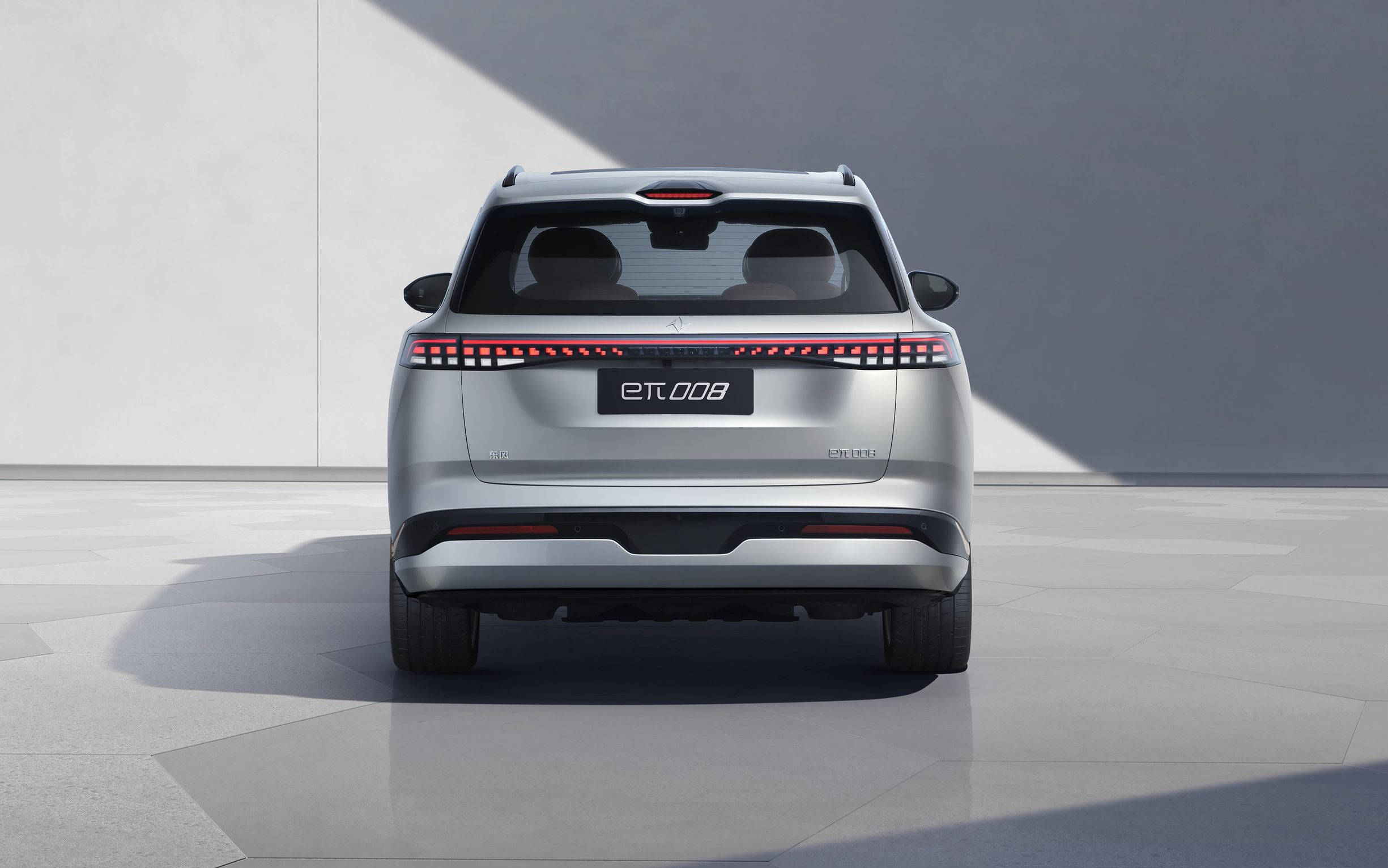 车尾部分,东风奕派eπ008非常具有层次感,同时尾灯也是采用了贯穿式灯带,内部同样为点阵式光源与前脸形成了呼应。