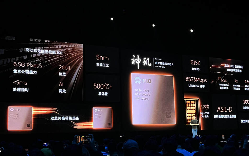 作为5纳米智驾芯片,蔚来神玑 NX9031被冠以“全球首颗”称谓。值得称道的是,这款芯片和底层软件均已实现自主设计。蔚来表示,神玑 NX9031设置了超过500亿颗晶体管,能够实现四颗业界旗舰芯片的性能。