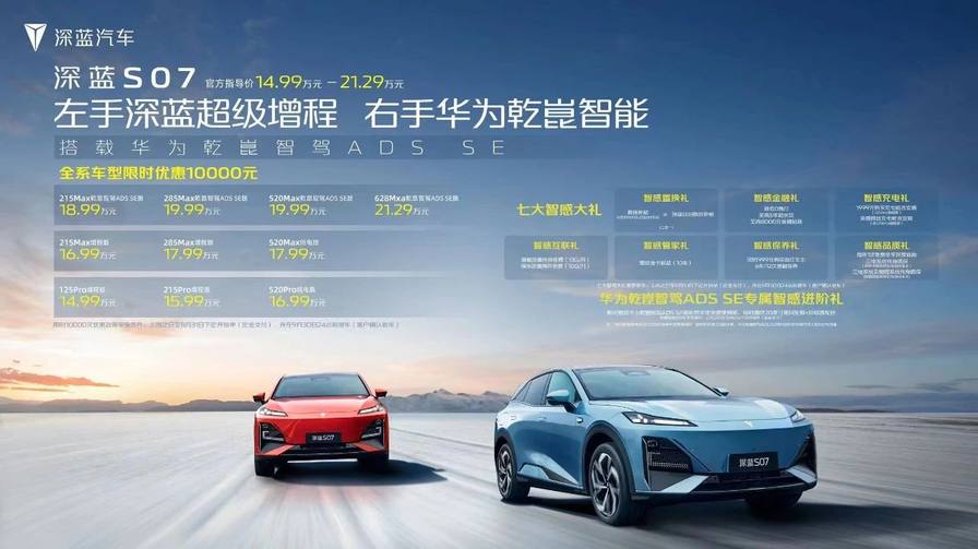 20万内的华为智驾增程SUV,深蓝S07高调上市!华为乾SE仅18.99万起