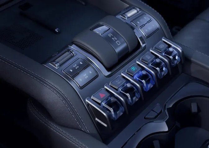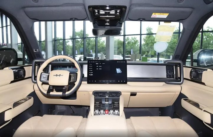 跟外观设计一样,方程豹豹5的内饰造型也是相当硬派,车内采用了“超级锁扣”的设计理念,方方正正的中控台造型,配合大尺寸的屏幕,既有科技效果,又符合自身硬派的定位。而且在车辆启动/熄火时,车辆的档杆可以升起/回落,给驾驶带来了仪式感。