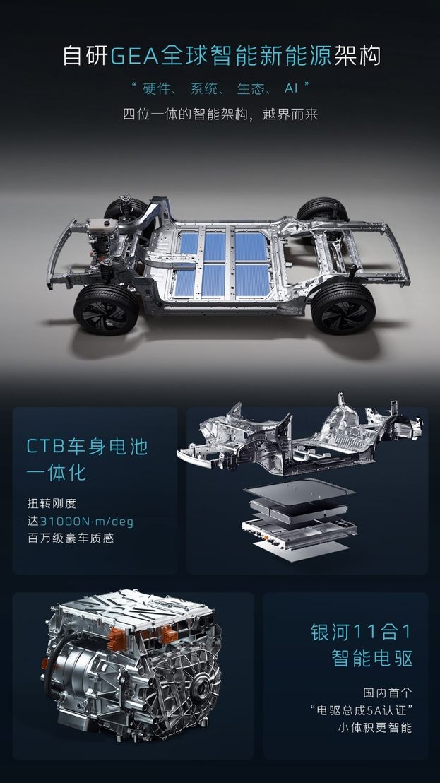 吉利银河E5搭载的银河11合1智能电驱同级重量最轻、体积最小、动力最强、效率最高,实现IGBT电驱效率行业首次突破90%,达到90.04%。同时,吉利全栈自研的“魔方”热管理系统,实现20合1的超高集成。两项核心技术的突破,让银河E5的百公里电耗达到同级最低的11.9kWh。