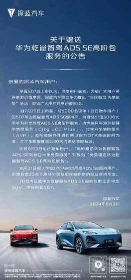 借助华为乾崑ADS SE的加持,让深蓝S07兼顾了高智能和高价值,可以说是入手智驾的超值选择。随着深蓝S07#全民智驾,先享体验#的推出,标志着深蓝汽车再次以实际行动助推汽车行业的智驾规模商用,并“以用户为中心”,为深蓝S07乾崑智驾ADS SE版用户提供更多价值享受。此次对锁单用户赠送价值5000元的华为乾崑智驾ADS SE高阶包终身永久免费订阅,不仅是深蓝汽车携手用户对未来出行方式的共同探索,同时也在新能源市场中再度夯实深蓝S07产品高价值感知。