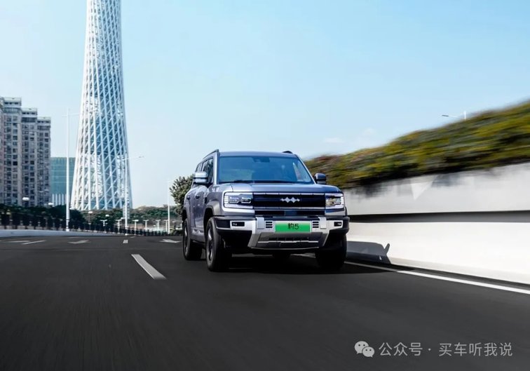 豹5搭载比亚迪DM5.0技术同源的DMO超级混动越野平台,在新能源的加持下赋予了车辆媲美燃油5.0T的动力性能和百公里7.8L亏电油耗水平,百万级豪车同款的云辇-P智能液压系统,更将车辆的操控性、通过性、舒适性和越野能力提升至全新高度,轻松征服全场景,兼顾全工况。豹5在比亚迪领先的三电技术之上,突破了传统硬派SUV的能力上限和用车痛点,更通过技术平权,让人人都能越野,每一位驾驶者都能感受到城野皆自由的硬派出行新体验。