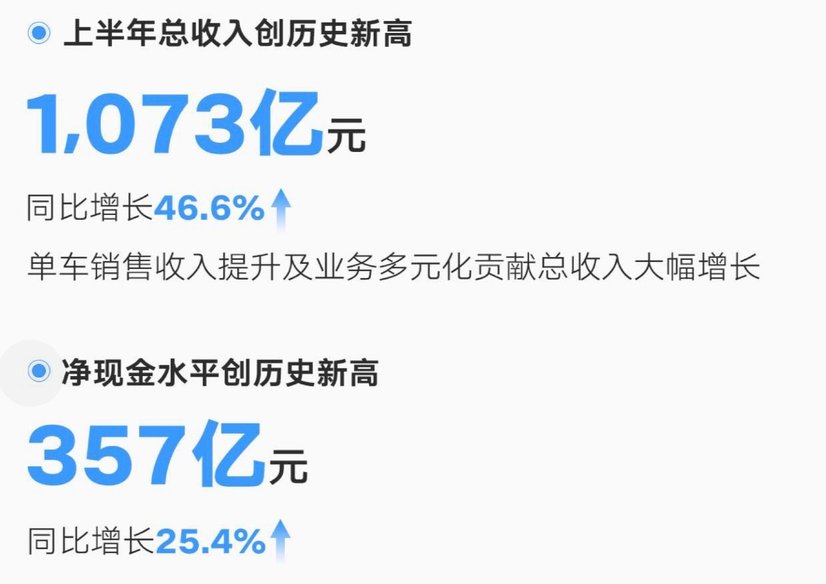 与这样的经营业绩相匹配的销量结构是,上半年吉利汽车集团销量超预期完成,油电双线齐增长。集团累计销量95.6万辆创历史新高,同比增长约41%,连续3个月持续同比、环比双增长,新能源累计销量超32万辆创历史新高,同比劲增约117%,新能源产品占比持续提升。目前吉利汽车位居新能源车自主品牌第一梯队、燃油车国内销量自主品牌第一。