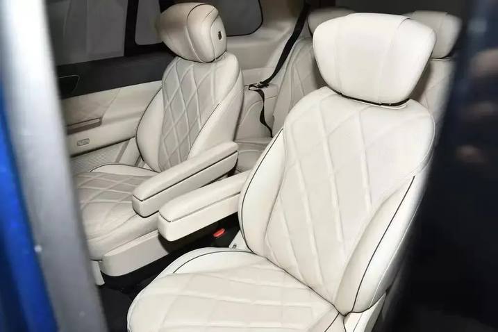 内部采用2+2+2的六座布局,前排和第二排座椅配备加热、通风、按摩功能,后排有冰箱,车顶配有前后双天窗。论空间配置和精细豪华程度来说, 完全达到了这个级别车型的主流水平。