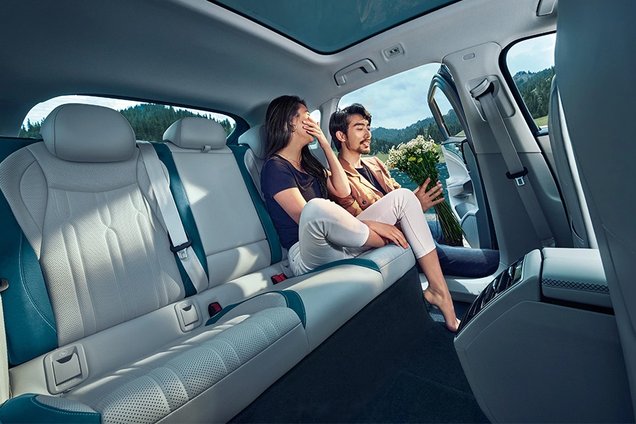 Smart Air 隐藏式智能空调能够根据阳光、温度等情况自动为乘客调节车内温度,Skyview 智能光感天幕则提供了超大的景观视野,还可进行光幕调节,既提升了科技感又增加了舒适感。