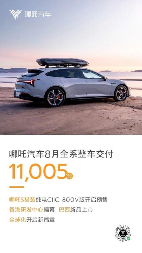 刚刚,哪吒汽车公布了8月交付量,8月共计交付新车11,005台。而在8月25日,哪吒S猎装车正式上市,并且哪吒S猎装 CIIC 800V版本也开启预售,作为中大型新能源猎装轿车,价格已经来到了15-20万的价格区间,相信对于哪吒后续销量来说会有促进作用。